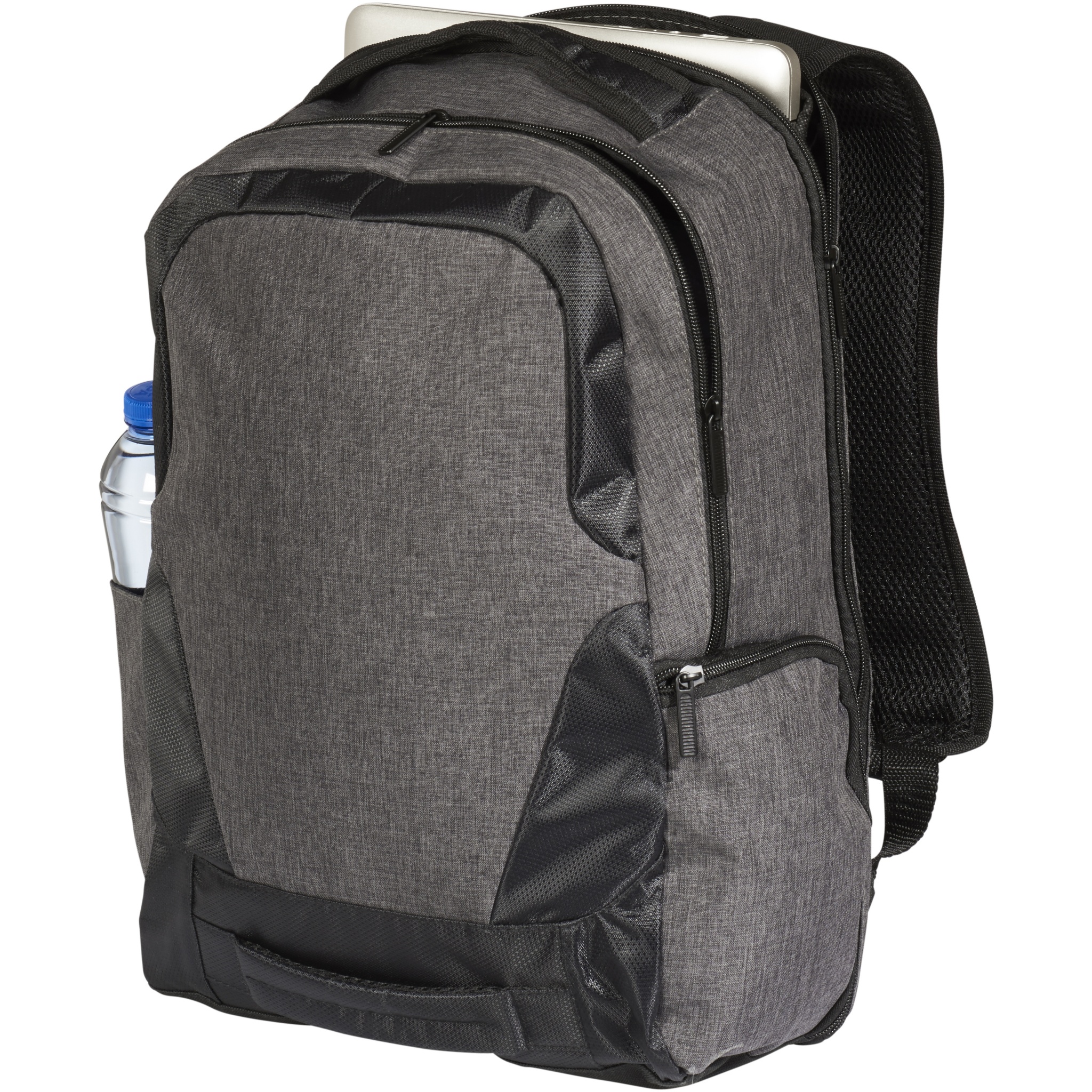 En elegant 17-tums datorryggsäck med USB-port och kabel. Utrustad med RFID-skyddad sidoficka, flera blixtlåsförsedda fickor och rem för rullväska på baksidan. Handtag på ovansida och framsida samt stoppade bärremmar gör den enkel att bära överallt. Det kan finnas mindre variationer i färgen på den faktiska produkten på grund av tygfärgerna, vävar och utskriften.