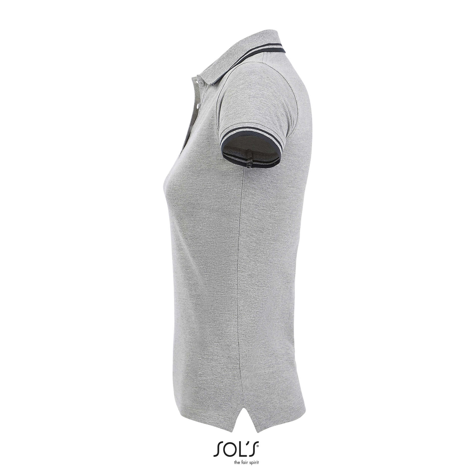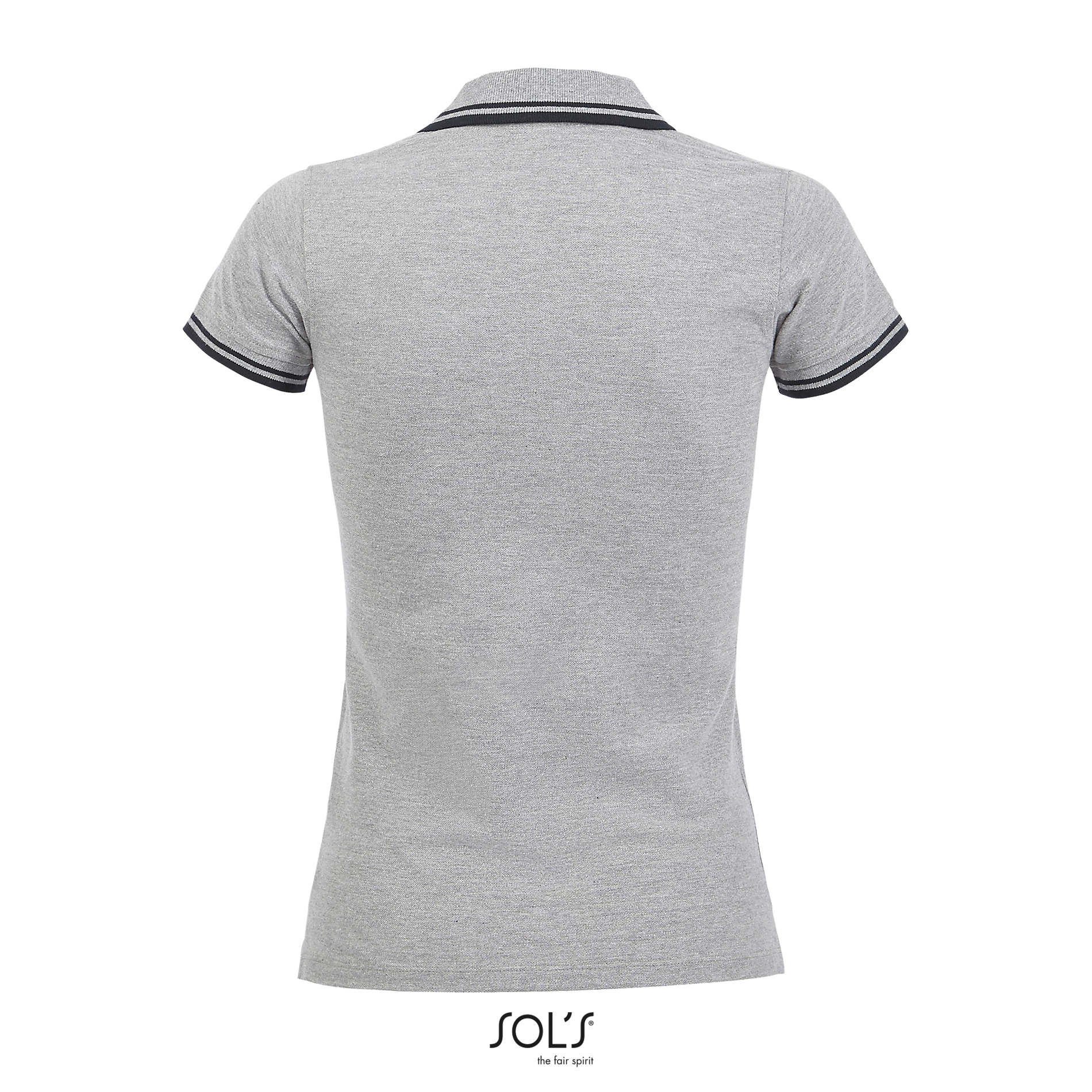 SOL'S PASADENA DAM, TENNISTRÖJA FÖR DAMER, 100 % ringspunnen bomull PIQUÉ 200, Krage och ärmslut i ribbad 1x1, Förstärkningstejp på halsen, Korta ärmar, Kontrastfärgade ränder på krage och ärmslut, Knäppning med 3 ton-i-ton-färgade knappar, Kroppsnära skärning, Skuren och sydd, Slitsar i sidorna, Extra knapp på insidan av sömmen för matchande storlekar, se storlekstabellen i avsnittet om produktdokumentation.