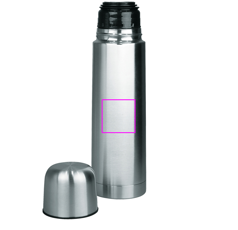 Dubbelväggig isolerkolv i rostfritt stål med 0,5l innehåll. Snäppförslutningen möjliggör snabb upphällning i koppen. Din logotyp kommer att lasergraveras på kolven. Varje isolerkolv är förpackad i en enda kartong.