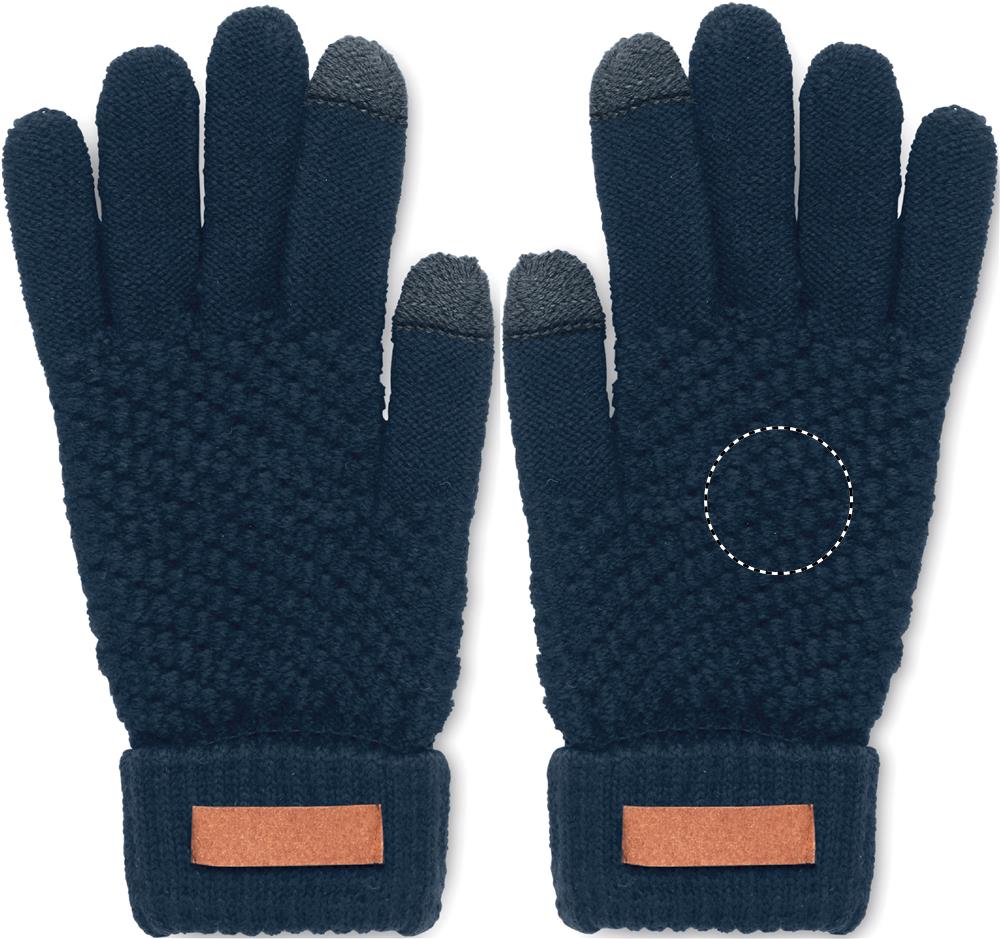 Taktila handskar för smartphone i RPET med etikett för tryckning.