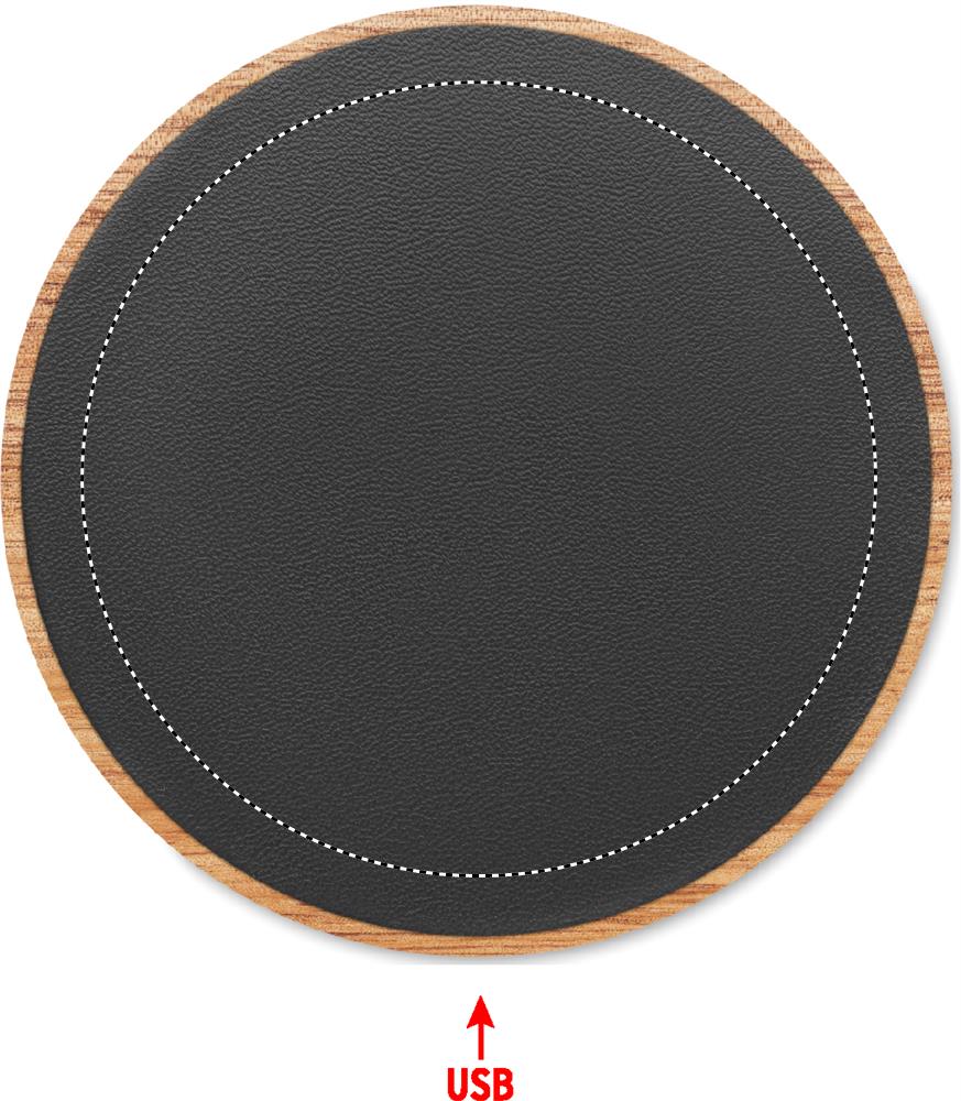 Trådlös laddare i akaciaträ och återvunnen PU. Anslut enheten till din dator, placera din smartphone på den och låt den laddas. Utgång: DC 9V/1,67A (15W). Kompatibel med alla QI-aktiverade enheter som senaste Androids, iPhone® 12, X och nyare.